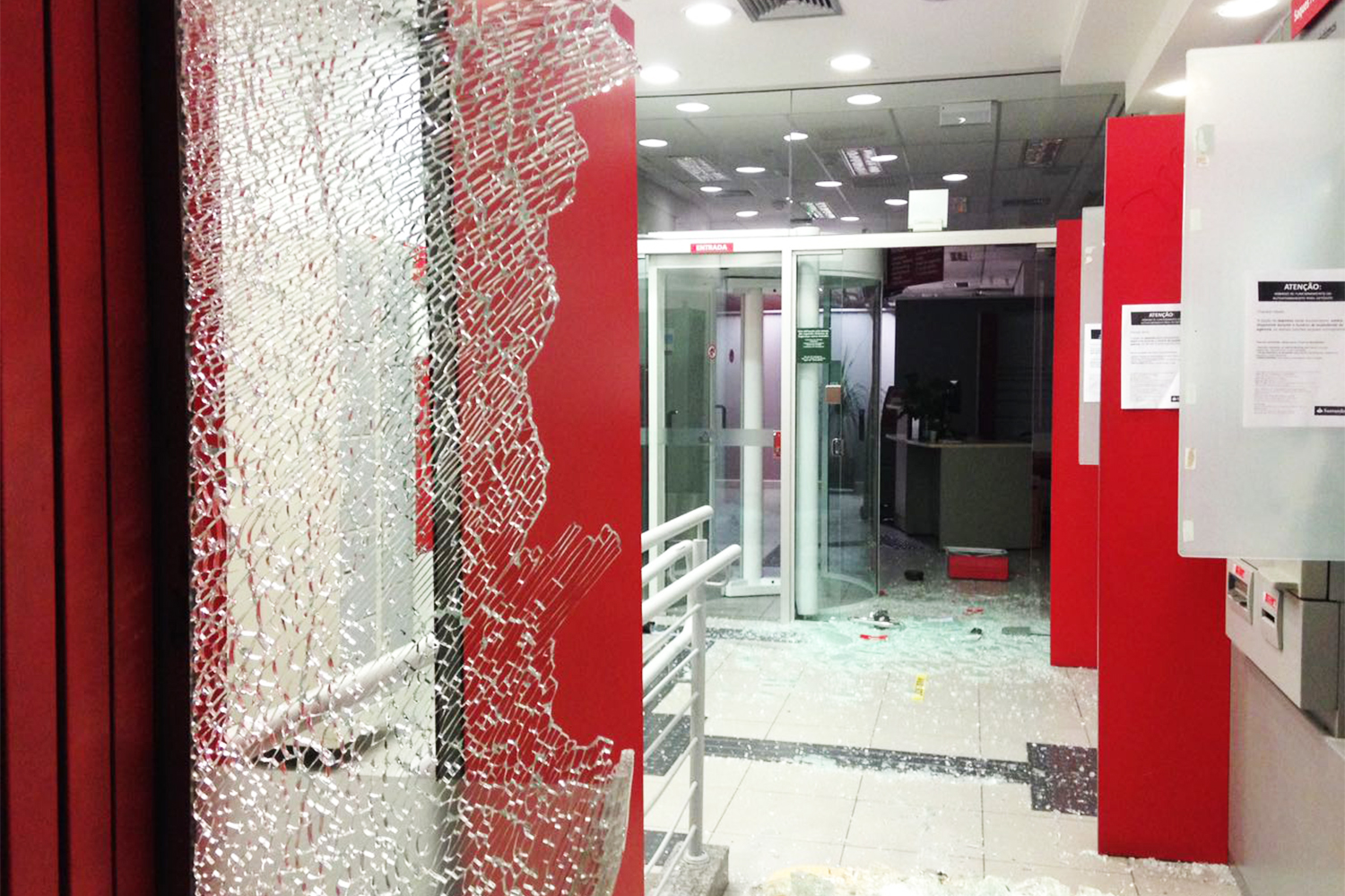 Agência do Santander Select com vidro quebrado durante protesto - João Pedroso - 12/01/2017 (João Pedroso Campos/VEJA.com)