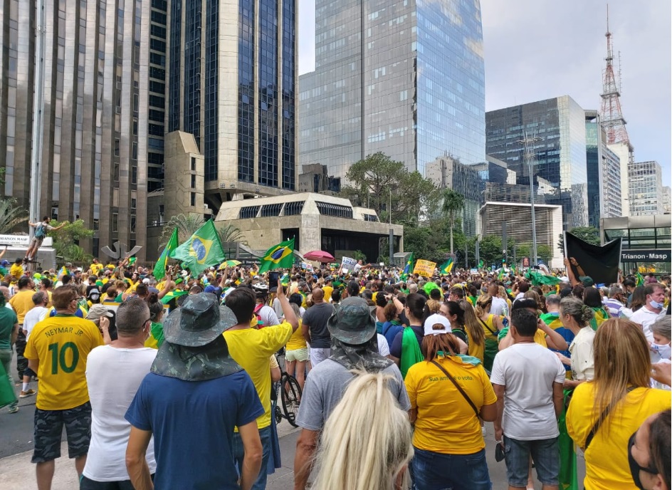 Já em São Paulo, o ato ocorreu em frente ao prédio da Federação das Indústrias de São Paulo (Fiesp), na Avenida Paulista. Os manifestantes pediam a renúncia do governador do estado, João Dória (PSDB) e se colocaram contra as medidas restritivas – como suspensão do campeonato estadual de futebol, fechamento de escolas, igrejas e de parte do comércio e a proibição de circulação no período noturno – que vão começar a valer a partir de 15 de março.