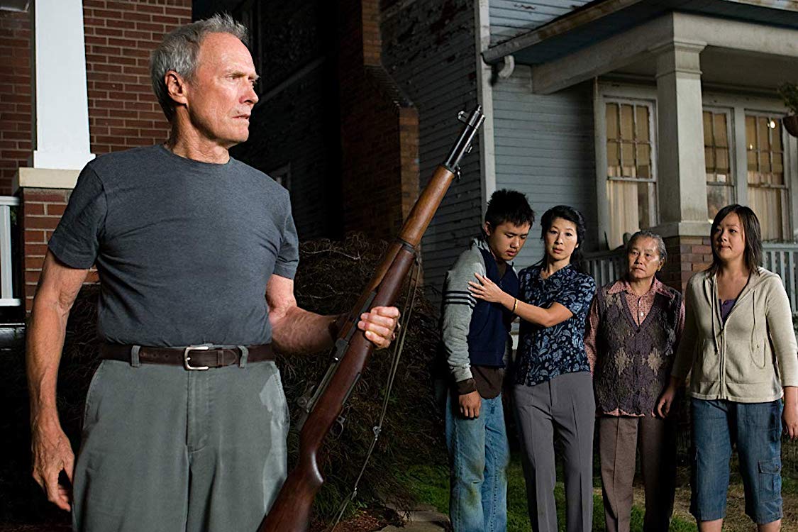 • Em Gran Torino (Estados Unidos, 2008), Clint Eastwood literalmente rosna cada vez que algo ou alguém lhe desagrada – ou seja, quase todo o tempo. No papel de Walt Kowalski, veterano da Guerra da Coreia, operário aposentado da Ford e racista em tempo integral, ele rosna para os netos, que se comportam mal no velório da avó; rosna para os dois filhos gordos e consumistas e as noras frívolas; rosna e xinga o padre que, respeitando um último pedido de sua mulher, tenta arrastá-lo para o confessionário; e rosna e cospe sempre que vê a matriarca da família asiática que mora na casa ao lado da sua – insulto que ela nunca deixa de retribuir. A velhinha cospe porque quer que Walt note que é ele agora o intruso nesse bairro de Detroit tomado por imigrantes da etnia hmong, como ela mesma. E Walt cospe porque, na sua visão estreita, eles são os invasores bárbaros que arrasaram seu império. O emblema dessa glória passada é o Ford Gran Torino que Walt ajudou a montar na fábrica, e que mantém amorosamente na sua garagem. A certa altura, Thao (Bee Vang), o neto da velhinha, tenta roubar o carro, por pressão de uma gangue asiática. Walt reage de sua maneira habitual – com um rifle em punho, que aponta também para os delinquentes que atormentam Thao. Em vez de colher hostilidade, ganha a gratidão da vizinhança, que lhe deixa presentes à porta, convida-o para festas e faz dele um herói local. Eis, portanto, que ainda existe gente que respeita Walt: não a família que ele criou, mas os invasores que ele despreza.