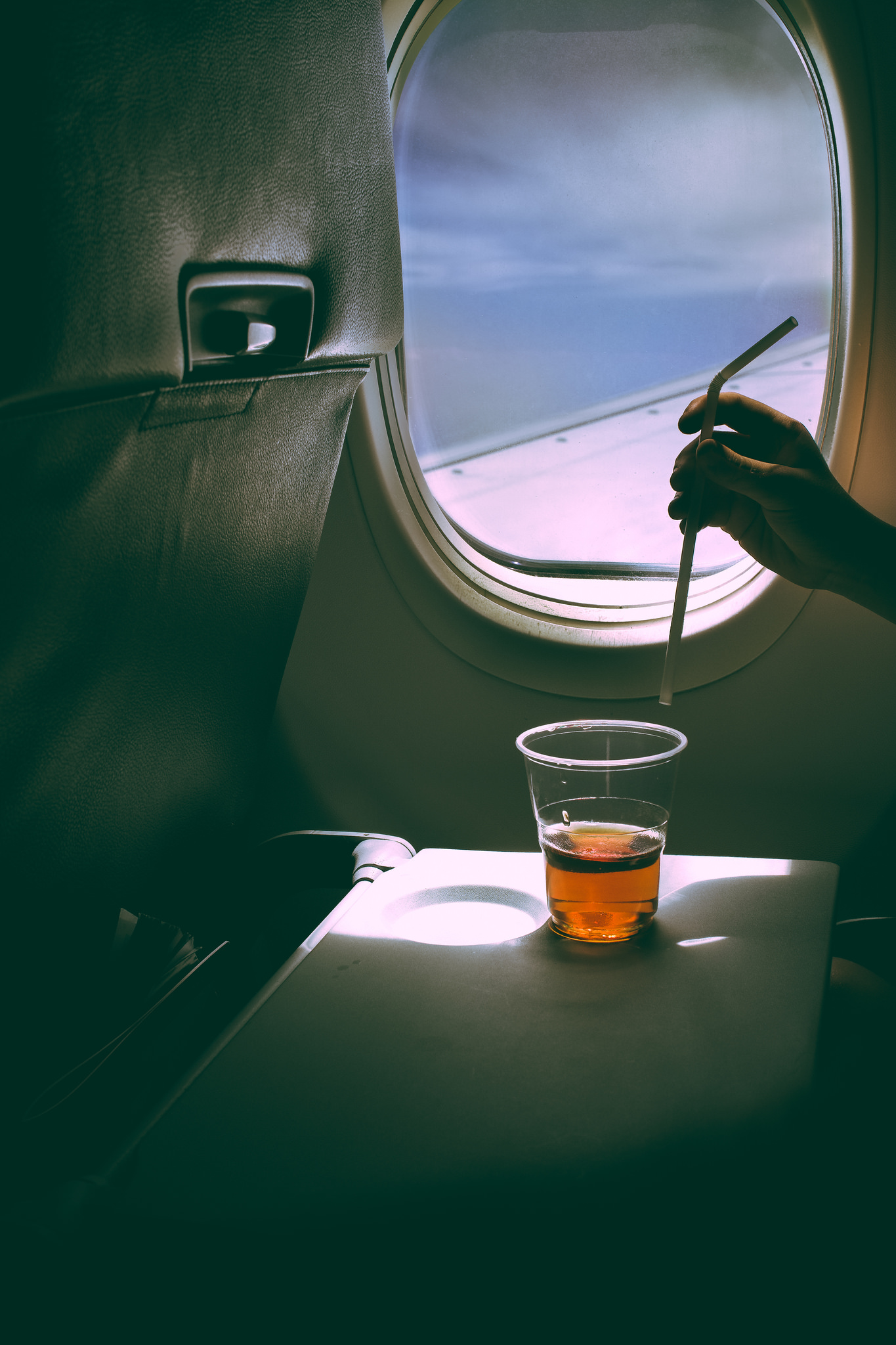 Se você ainda não sabe _ou não experimentou por conta própria_, estudos mostram que os efeitos do álcool são intensificados quando estamos voando. O motivo é simples: ele desidrata. Para piorar, como o ar na cabine dos aviões é muito seco a desidratação pode ocorrer de maneira muito mais rápida a 11 mil metros de altura. Dizem que uma dose em terra firme equivale a duas no ar. Para não fazer feio, dar trabalho aos outros ou simplesmente para cuidar do seu corpo, fique na primeira dose!