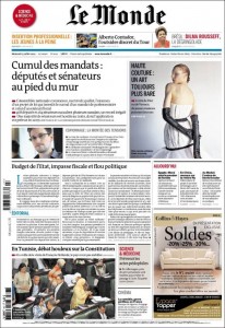 O Brasil é destaque na primeira página do Le Monde de hoje. Com direito a foto da presidente, pode se ler: Dilma Rousseff, la dégringolade. Nem precisa de tradução.