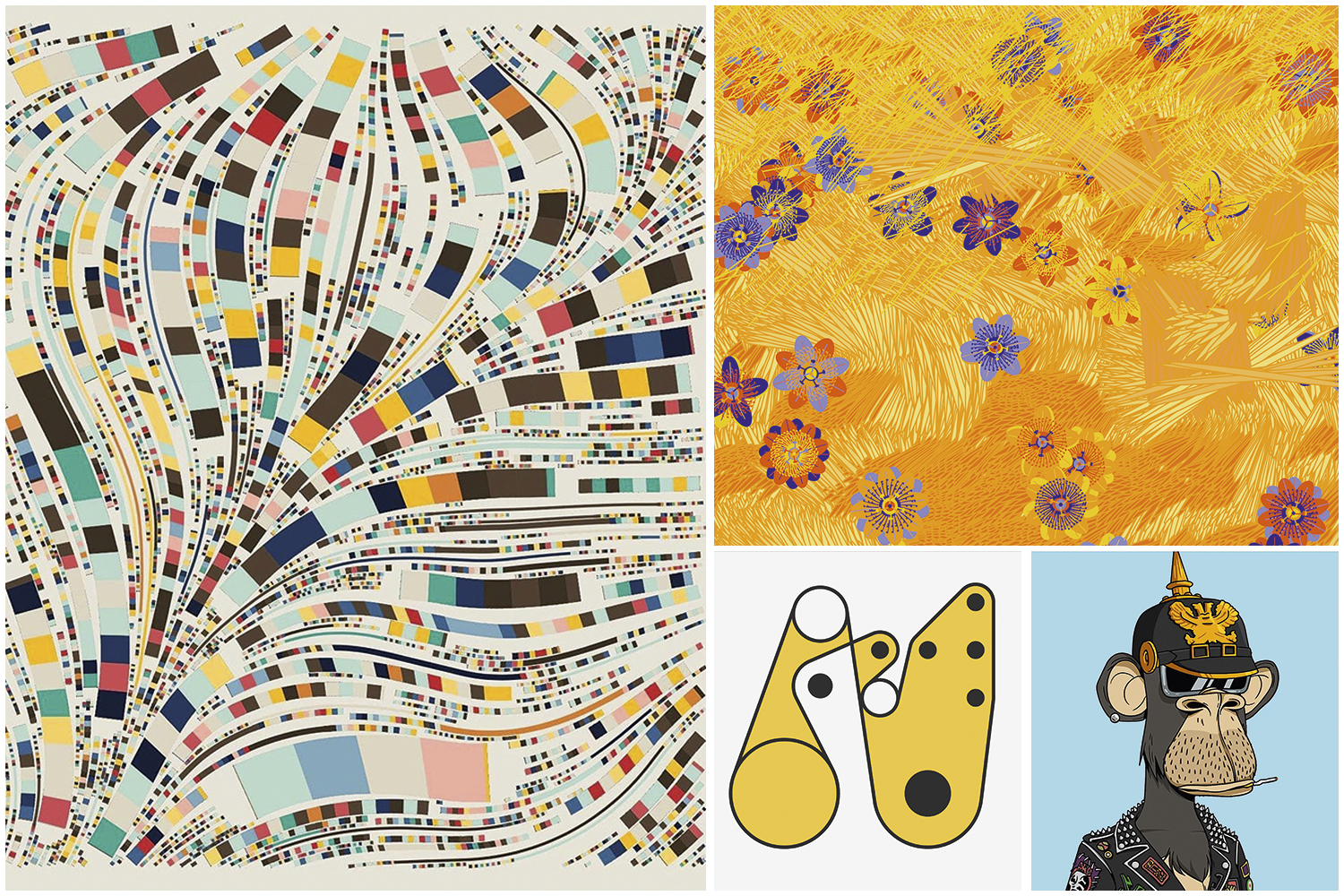 Embora as engenhocas tecnológicas não roubem o emprego dos artistas, os programadores já entraram na disputa pelo mercado. Formado em computação, o americano Tyler Hobbs é um dos nomes fortes do ramo. Sua coleção mais famosa, Fidenza, brinca com formas e cores em 999 obras lançadas em junho, e vendidas inicialmente por cerca de 400 dólares cada uma. Meses depois, o valor delas explodiu, alcançando cifras milionárias. “Quero encontrar novas maneiras de fundir profundamente a mão com o algoritmo”, já proclamou Hobbs. Na contramão dele, Monica Rizzolli foi da arte tradicional à programação. Para transformar as flores que retrata em números, ela estudou botânica e passou dois meses programando o algoritmo. “É como se jogasse um dado e a combinação dos lançamentos definisse a estação, as cores, a quantidade de pétalas e cada detalhe da obra.”