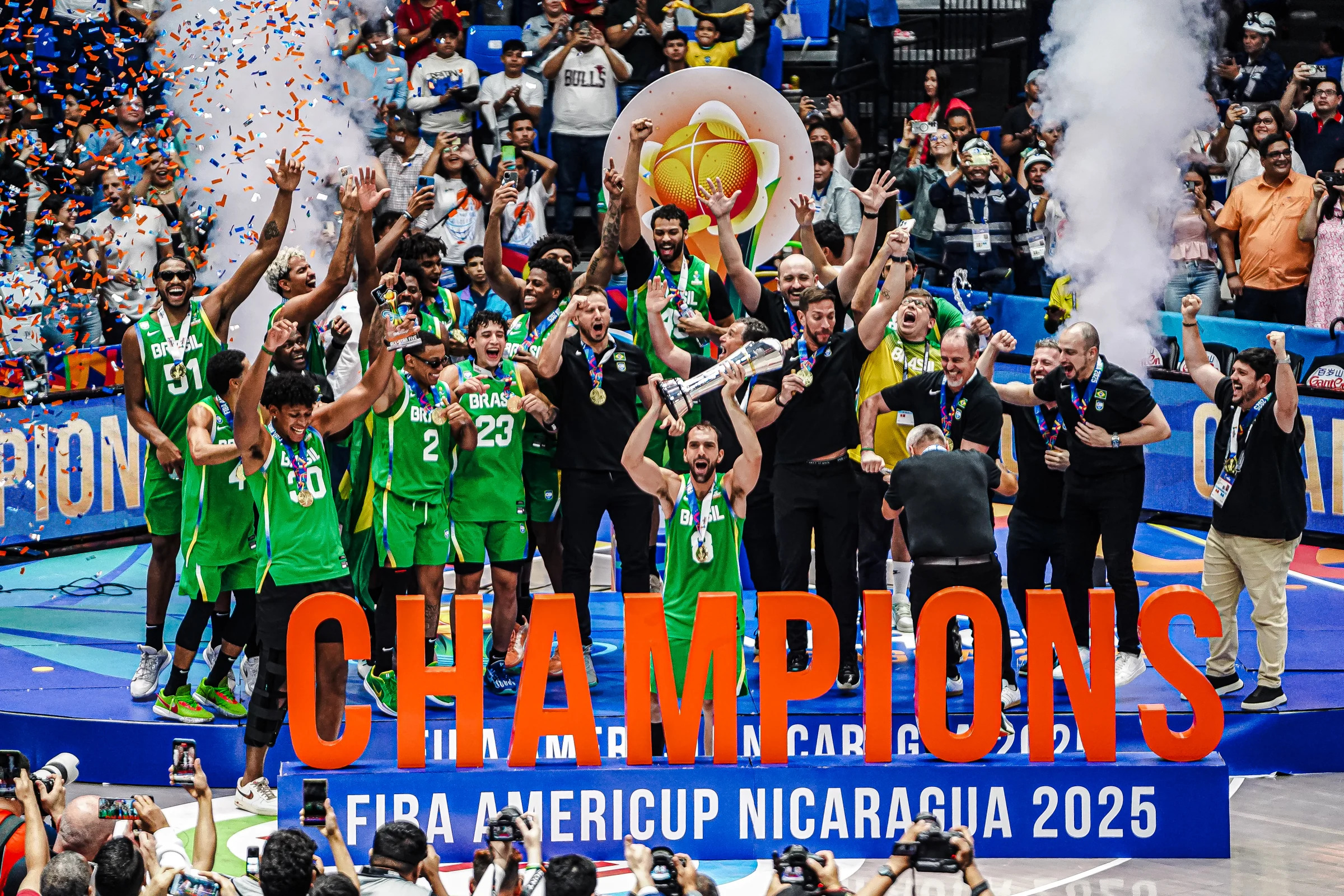 O Brasil se tornou pentacampeão da Copa América de Basquete neste domingo, 31, com uma vitória na final para cima da Argentina por 55 a 47. O time encerrou um jejum de 16 anos sem o título continental e de quebra se vingou da derrota para os hermanos na decisão da última edição do torneio em solo brasileiro.