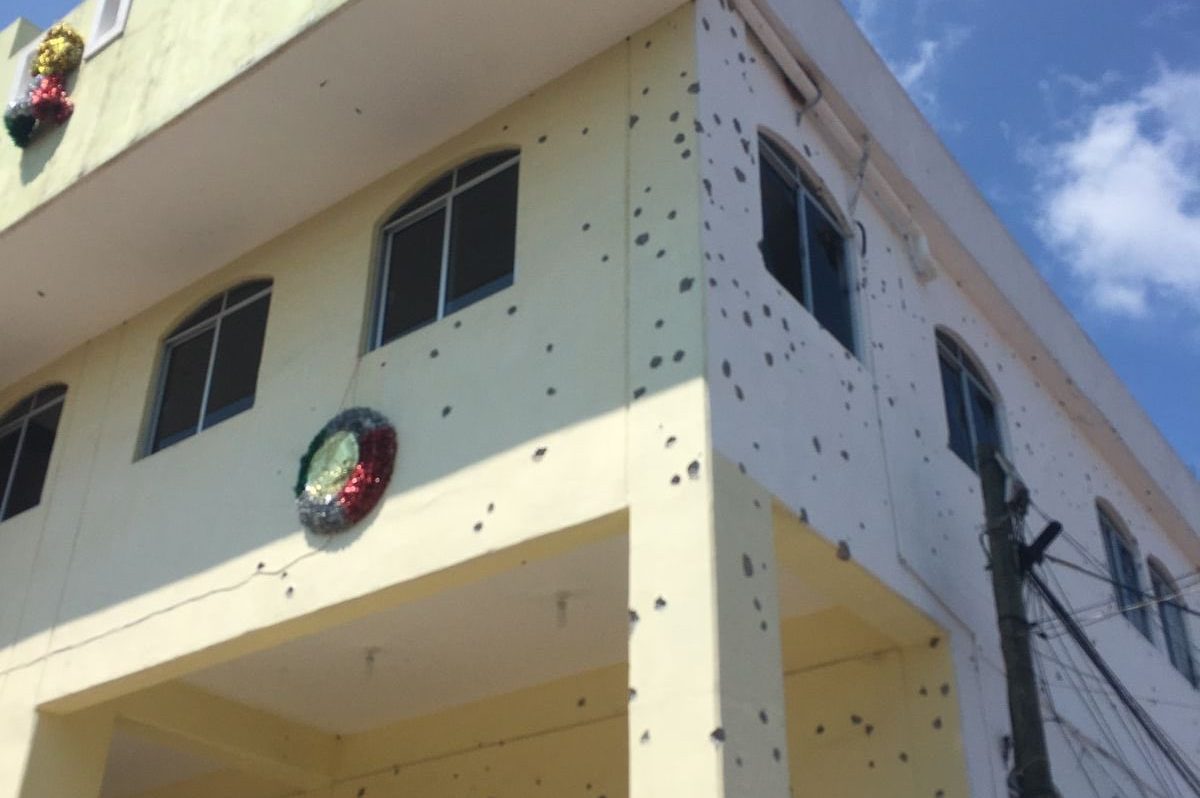 Imagens do local mostraram a prefeitura cheia de buracos de balas.