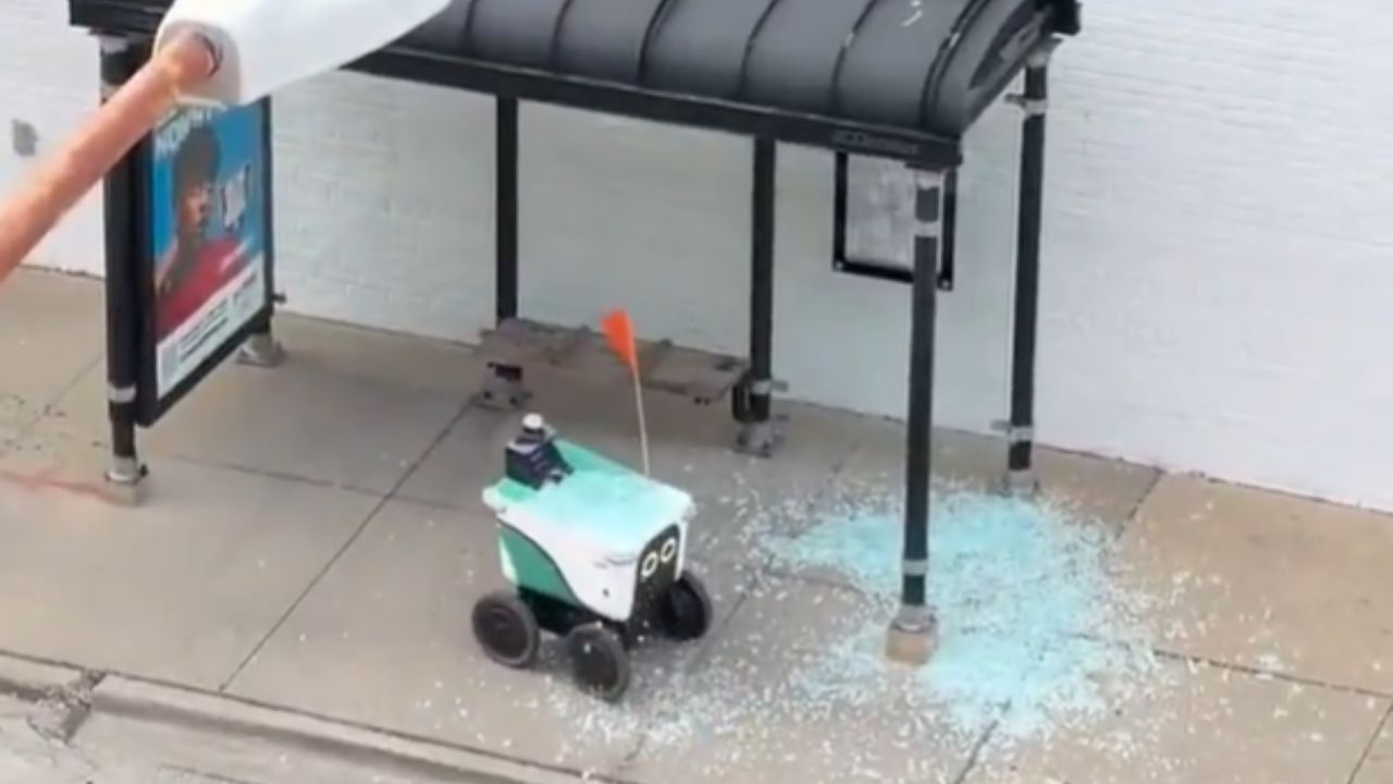 Vídeo: robô de entrega perde controle e destrói ponto de ônibus nos EUA